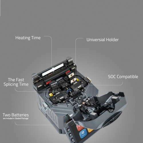 The FiberFox Mini 5C+ Core to Core 6 Motors Set Splicer Machine uses the Core Alignment DCID (Digitized Core Image Detecting) System method for splicing. The machine has an average loss of SM(0.02dB) / MM(0.01dB) / DS(0.04dB) / NZDS(0.04dB) / G.657(0.02dB). It has Factory Installed : 12 user modes, User installable mode : 128 splicing programs. The fiber types that can be used in this machine are SM(ITU-T G.652, MM(ITU-T G.651), DS(ITU-T G.653), NZDS(ITU-T G.655), IT-G657A, IT-G657B, 0.25mm, 0.9mm, 2.0mm, 2.4mm, 3.0mm, FLAT(indoor cable). The average heating time is Typical 10s (60mm sleeve) and 5 Sec (Micro Sleeve). There are 36 (Factory installed mode : 4, User installable mode : 32) heating modes that are available. To detect the fiber, the machine uses 2 CCD camera system with Color 4.3″ LCD monitor, with Touch Screen (Tempered Glass) monitor which allows you to see all the functions and features clearly. The battery used here typical 200 Cycles (Splice & Heat) / single battery, 2 Batteries Standard with a power supply ability of AC 100-240V input or DC 9~14V. The max wind speed resistance of this splicer machine is 15m/s.