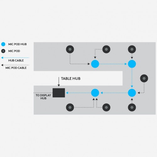 | Others | Pan: ±90° Tilt: +50° / -90° Field of View: Diagonal: 90° Horizontal: 82.1° Vertical: 52.2 RALLY TABLE HUB Single CAT6A cable connection to Rally Display Hub ( 5m cable included, supports customer-supplied cables up to 50 m) Active speaker detection: analyzes audio from up to 7 Mic Pods and 56 beams every 8ms 12 Pin connector for Rally Mic Pod HDMI Type A passthrough to Display Hub (x2) USB Type C USB Type A (reserved for future capability) USB Type B (connects to meeting room computer) RJ45 (reserved for future capability) Power input RALLY DISPLAY HUB HDMI Type A (x2) (connects to displays) USB C (connects to Rally Camera) USB Type B (connects to meeting room computer) RJ45 (connects to Table Hub) Mini XLR (x2) Powers one or two Rally Speakers Power input REMOTE CONTROL RF remote control (line of sight not required) CR2032 batteries (included) |