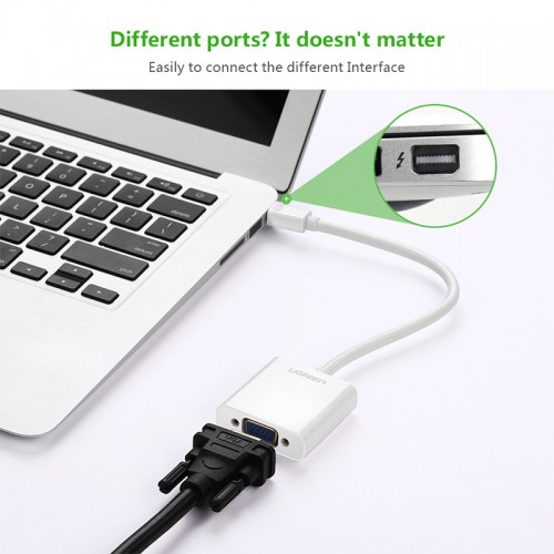 UGREEN Mini DP to VGA Converter White designed to connect a Mini DisplayPort/Thunderbolt port compatible PC or graphic card to an HDTV, monitor, or projector with VGA; A separate VGA cable (sold separately) is required. Here Mini Displayport to VGA converter supports video resolution up to 1920 x 1200 and 1080p (Full HD). This converter extend or Mirror your Laptop/PC to a second display for an expanded workstation, home theater or show presentations on a projector at office, school or home. With built-in chipset, it is not bi-directional, and can only convert signal from mini displayport PC to VGA monitors. Great for optimal signal transfer and corrosion resistant; VGA interface does not transmits audio. You can connect your PC to an external speaker for audio output through a separate audio cable. The brand compatibility of this converter are Apple MacBook, MacBook Pro, MacBook Air, iMac, Mac mini, Mac Pro; Microsoft Surface Pro/Pro 2/Pro 3 (NOT Surface/Surface 2); Lenovo ThinkPad X1 Carbon, X230/X240s, L430/L440/L530/L540, T430/T440/T440s/T440p/T530/540p, W530/W540, Helix; Dell XPS 13/14/15/17, Latitude E7240/E7440, Precision M3800; Alienware 14/17/18; Acer Aspire R7/S7/V5/V7; Intel NUC; Asus Zenbook; HP Envy 14/17; Google Chromebook Pixel; Cyberpower Zeusbook Edge X6; Toshiba Satellite Pro S500, Tecra M11/A11