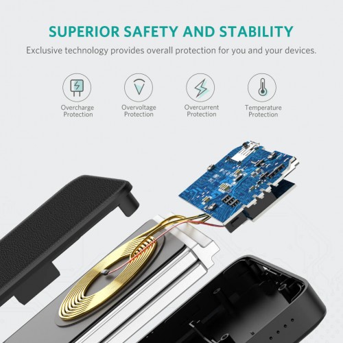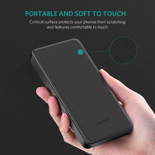 UGreen Wireless power bank Black is a perfect combination of 10000mAh power bank and wireless charger,charges 3 devices simultaneously and is a perfect complement to your room and office.It has 10000mAh of battery capacity, 3 (USB C+ USB A+ wireless charging?output design, with cables you can charge 3 devices simultaneously.The battery can be recharged within 3 hours via the USB C port (Not support QC fast charge for input).18W of power delivery, USB A port supports QC/FCP/AFC fast charge protocol while Type C port supports PD/QC/FCP/AFC fast charge protocol.Non-Qi enabled phones will need a Qi wireless charging receiver to power up.