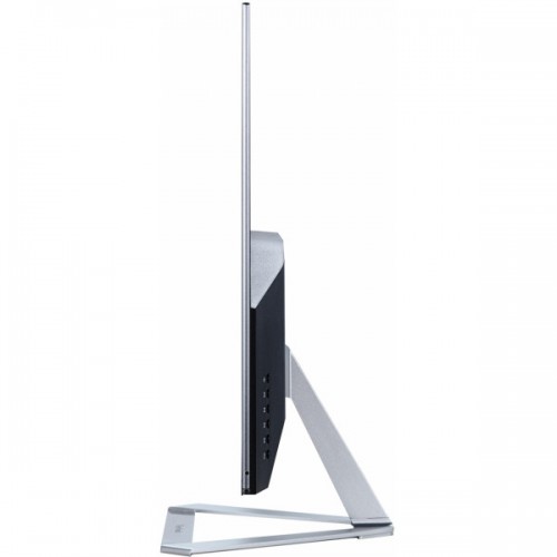 - Frameless bezel and metallic triangle stand